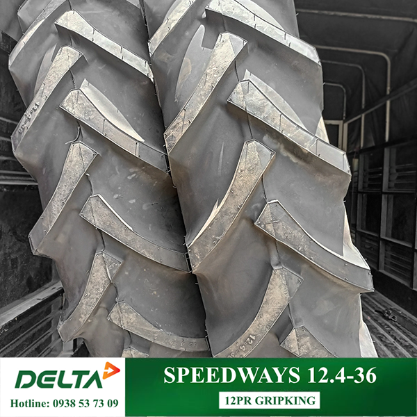 Lốp xe máy cày 12.4-36 Speedways phù hợp cho các loại máy cày, máy kéo nông nghiệp cần lực kéo mạnh, độ ổn định cao và khả năng hoạt động trong điều kiện đất phức tạp.